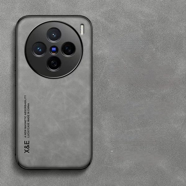 Silky Leather Finish Back Case with Built-in Magnet for Car Mount & Enhanced Camera Protection for Vivo